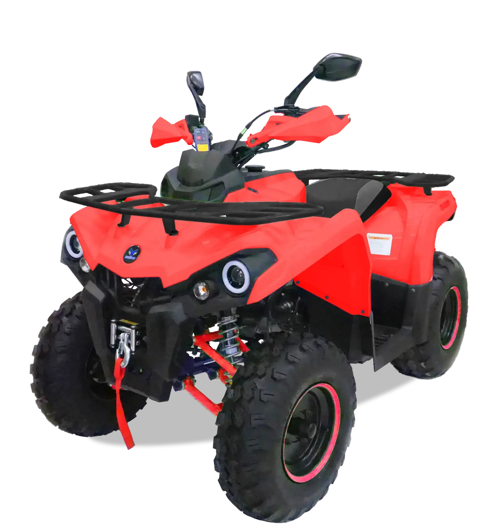 Квадроцикл оборудован мощным 200 кубовым четырехтактным бензиновым двигателем. Система запуска – электростартер. Трансмиссия вариаторного типа с передачей заднего хода. Развивает скорость до 80 км/ч. Предусмотрен ограничитель скорости. Выдерживает нагрузку до 200 кг. Прекрасно подойдет для поездок по пересеченной местности. Комплектуется лебедкой, фаркопом, зеркалами заднего вида, защитой рук, электронным спидометром, 10 дюймовыми колесами, багажниками, яркой оптикой.