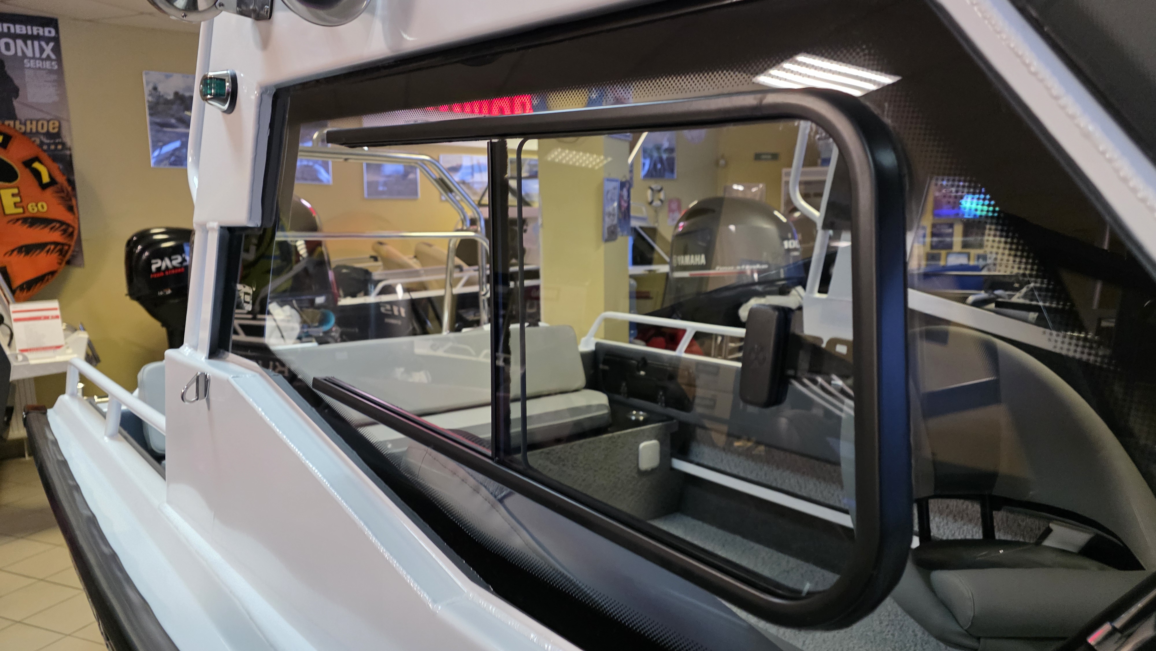 Открытый кокпит спереди лодки, отделен от основного салона алюминиевой полурубкой,