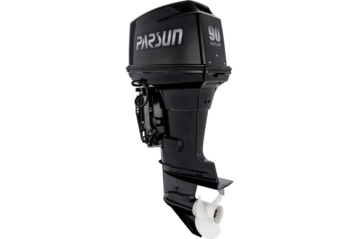 Парсун (Parsun) T90FEL-T — 90-сильный мотор для крупных лодок, катеров и яхт. Оснащен удлиненной ногой (508 мм), поэтому подходит для плавания по морю, крупным озерам и рекам. Запускается электростартером с системой зажигания CDI — он дает мощную искру и гарантированно срабатывает в любых условиях.