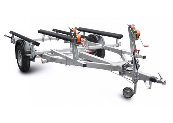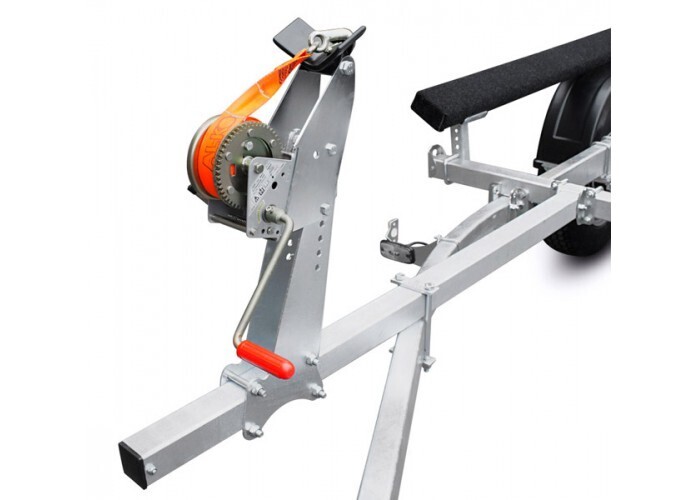 ● Передвижные носовые упоры имеют регулируемую высоту и угол наклона. Они могут быть отрегулированы и установлены в наиболее удобное положение для моделей перевозимой техники. Лебёдки облегчают погрузку техники на прицеп и страхуют её при спуске на воду.