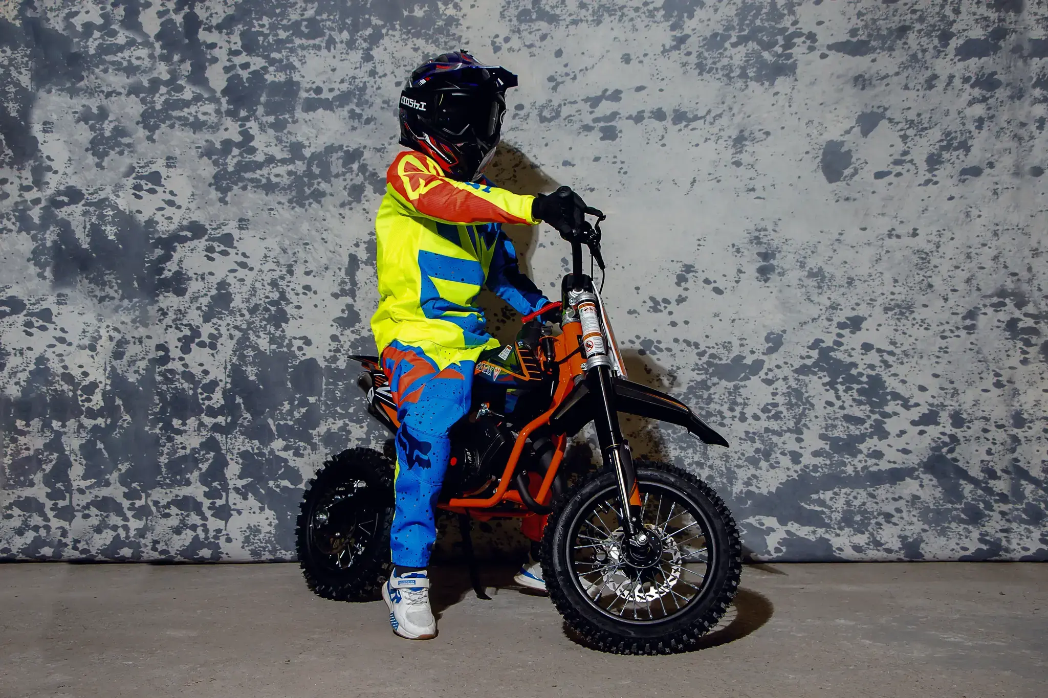 Миникросс MOTAX 60cc - это кроссовый мотоцикл с бензиновым 2х тактным двигателем объёмом 60 см3 и механическим стартером нового типа. Завести двигатель не составит труда даже у меленького гонщика. Рекомендованный возраст для использования техники детям от 4х до 10 лет.