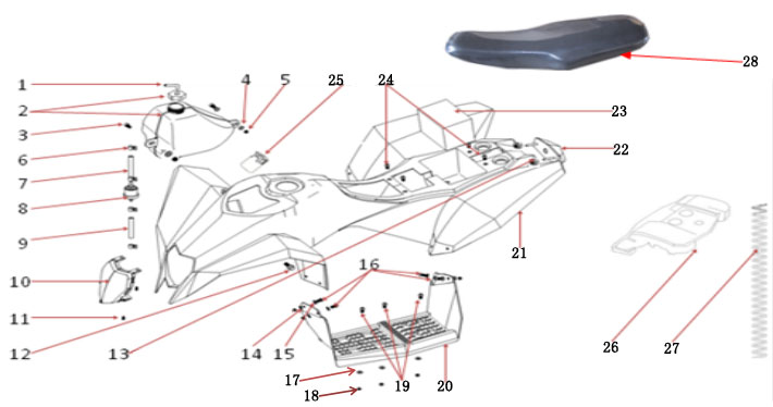| H-28 | 00-00011605 | Сиденье геккон бензин + электро |