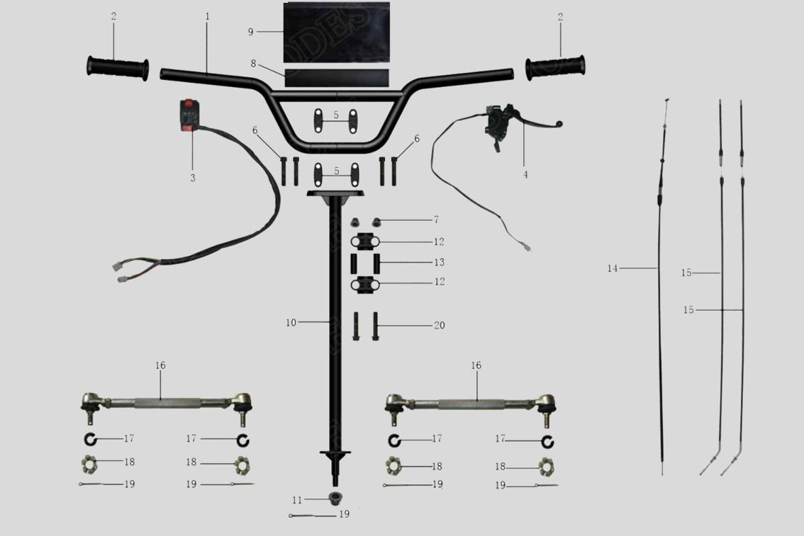 | 15 | 00-00013447 | Трос переднего тормоза 1165mm*100mm GRIZLIK 200 LUX |