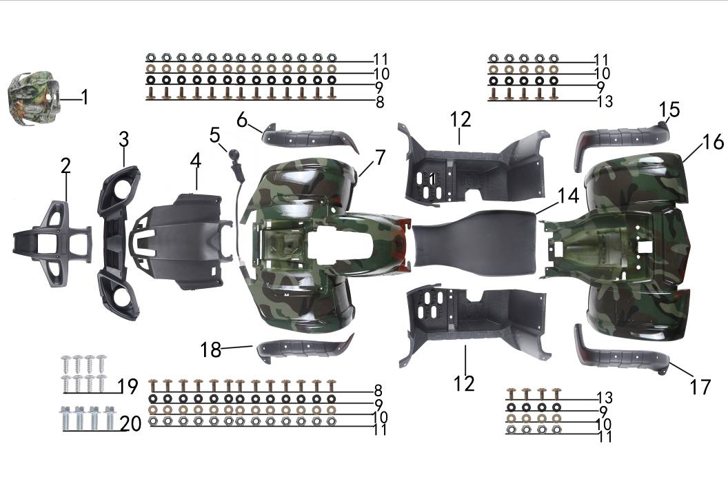 | 00-00013520 | Пластик основной задний зеленый камуфляж GRIZLIK 200 LUX | |